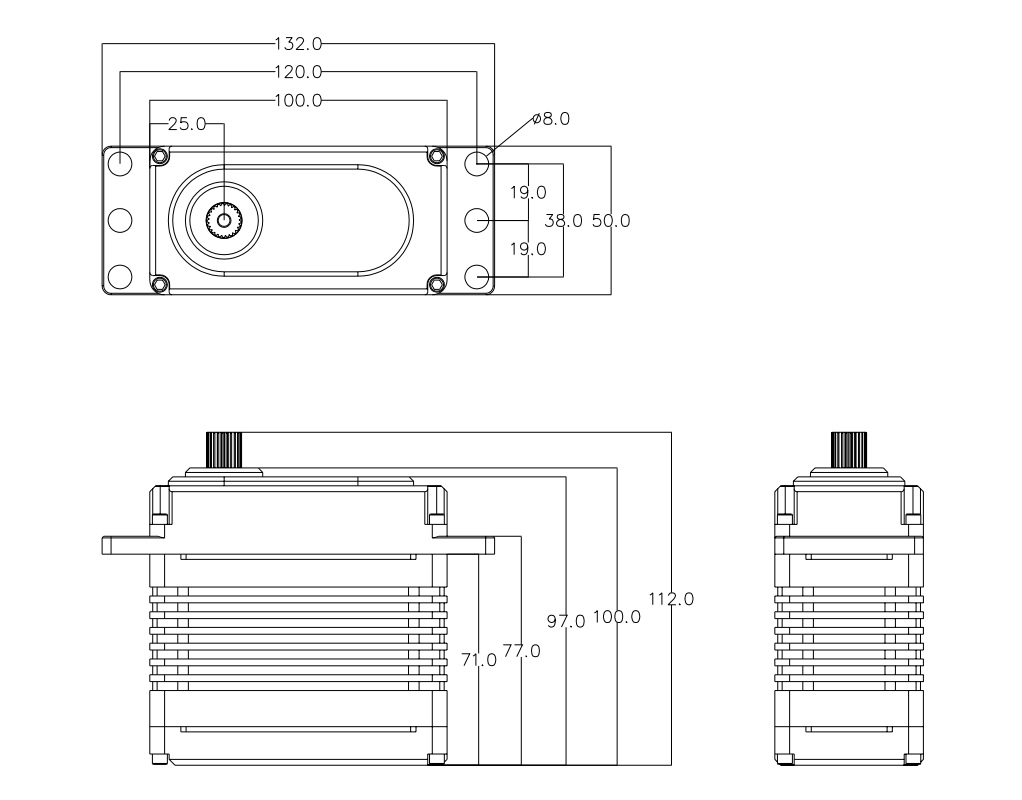 空載速度: 0.30 sec/60°@24 V 0.24 sec/60°@28 V 0.21 sec/60°@30 V